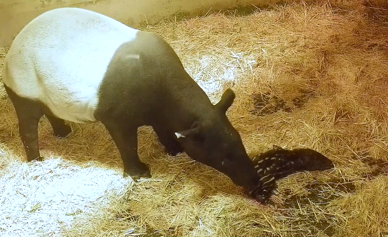 شهدت حديقة "فوينخيرولا" البيولوجية الإسبانية ولادة حيوان "تابير" ماليزي نادر ومهدد بالانقراض. ويتميز الحيوان ببقع وخطوط بيضاء لافتة.