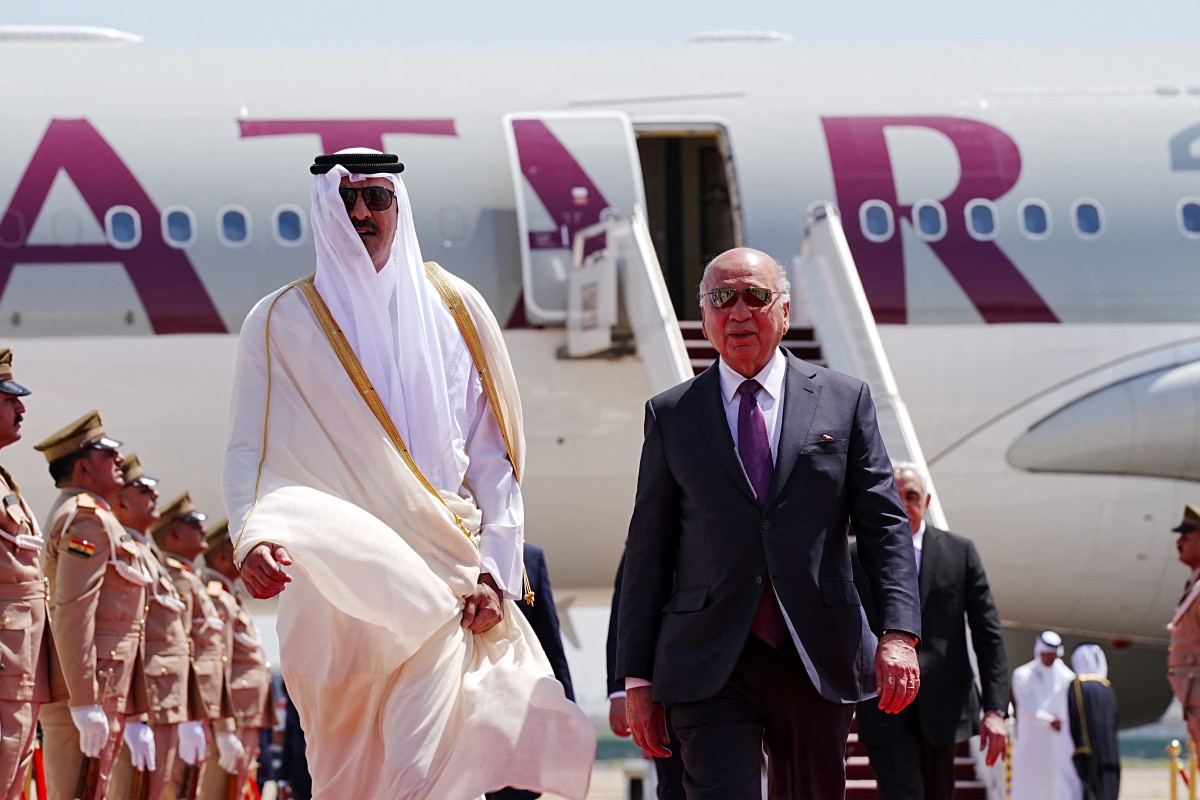 ورافق سمو الأمير في زيارته رئيس مجلس الوزراء وزير الخارجية القطري محمد بن عبد الرحمن آل ثاني، وعدد من كبار المسؤولين في الحكومة القطرية. وشهد مراسم الاستقبال عدد من كبار المسؤولين العراقيين، بينهم نائب رئيس الوزراء محمد تميم، والأمين العام لمجلس الوزراء حميد الغزي، ووكيل وزارة الخارجية أحمد نايف الدليمي.